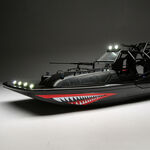 Run the Pro Boat Aerotrooper 25-inch Brushless Air Boat practically anywhere. Even on land! Featuring a 2080kv 480 Brushless outrunner motor with 3-blade airplane-style prop mounted above the hull, you can explore large bodies of water, plant-infested swamps, small grass fields, and even snow and ice. Keeping with the theme, a tactical/military hull scheme with removable guns, molded handrails, and cage add to the scale realism. Plus, the scale cockpit with seat and steering fits most action figures. Injection molded two-piece composite canopies are durable with a secure restraint system keeping all electronics safe during use. LED lights mean the fun doesn’t stop when the sun goes down. Explore new terrain with a one-of-a-kind boating experience.