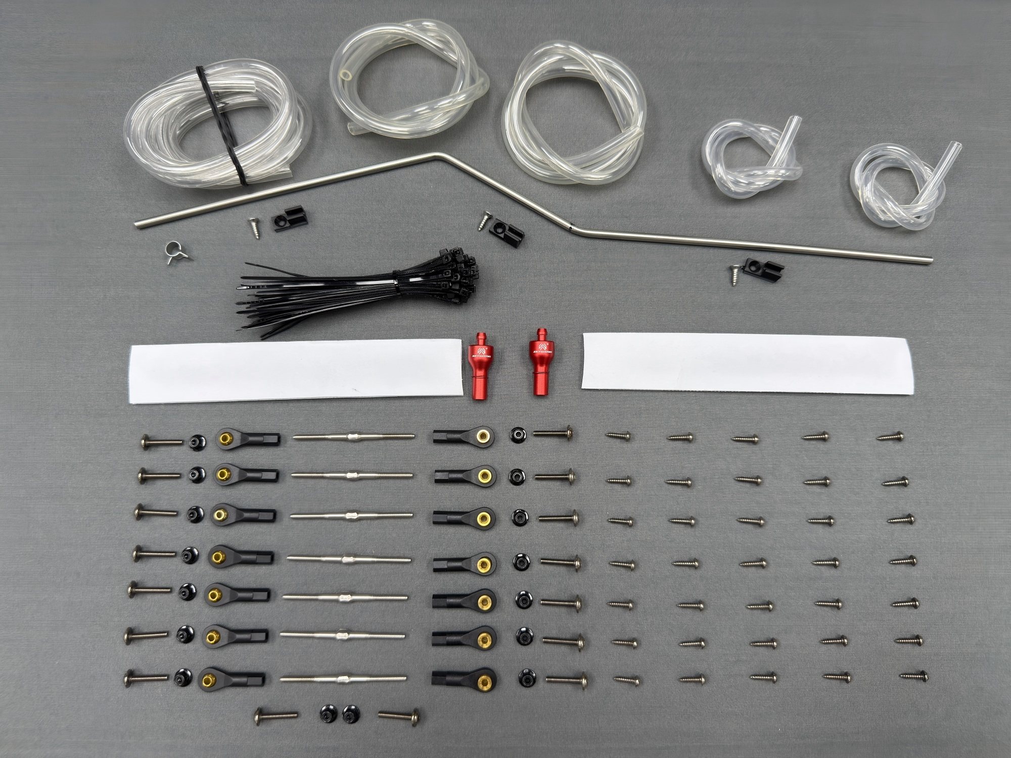 Hardware included in the product:1. Protective bag for the complete set of products2. skywing specially customized high-quality expansion cable 180 cores3. skywing patented product orange connection device3. JP electric retractable landing gear4. jet pipe5. Vector (including vector putter)6. Soft fuel tank(4500ml), Soft fuel smoketank (1750ml), fuel pipeline,7. Fuel Dot (2 pieces )8. Assembly bracket (for landing gear retraction)9. Power connector ((3x yellow XT60E, 1x black XT60E)10. High quality magic ties (2 pieces)11. Includes all pushrod parts12. Each brand of engine guide installation marking plate13. Marking board for measuring each control surface