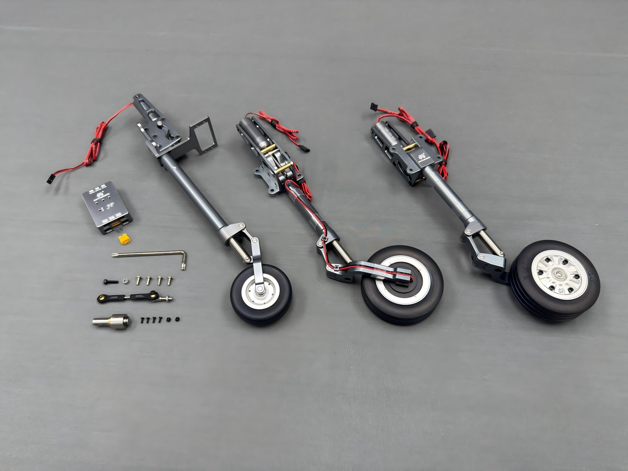 Servos size: :) flaps* 2 pcs (size: 40x20mm-35kg) arms*2pcs=1.5"-M3 :) ailerons* 2 pcs (size: 40x20mm-35kg) arms*2pcs=1.25"-M3 :) elevators* 2 pcs (size: 40x20mm-35kg) arms*2pcs=1.25"-M3 :) rudder* 1 pcs (size: 40x20mm-35kg) arms*1pcs=1.25"-M3 :) vector * 2 pcs (size: 40x20mm-35kg) arms*2pcs=1.5"-M3 :) front wheel steering * 1pcs(size: 40x20mm-20kg) arms*1pcs=1.0"-M3